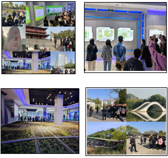 其次,实习的第2-4日,老师带领学生依次实地参观了邢台市城市规划展厅、邢台市城区建设状况(观察点有茶棚沟河道整治、清风楼古城保护、七里河滨河绿地、邢东新区新貌、金融中心等);师生一起参观了特色小镇西竖镇、岐山湖、山南头村、李保国科技馆等地点。在实习过程中,同学们与带队老师进行了积极的互动,老师们耐心地解答了实习中的一些问题,并对某些领域进行深入探讨。