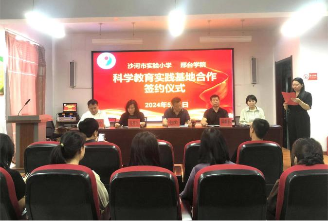 为更好服务中小学科学教育,5月9日,邢台学院资源与环境学院院长张秀兰、地理信息科学专业教研室主任汤占中一行赴沙河市实验小学,与沙河市实验小学签订“科学教育实践基地”,沙河市教育局副局长张建岭出席了签约仪式。